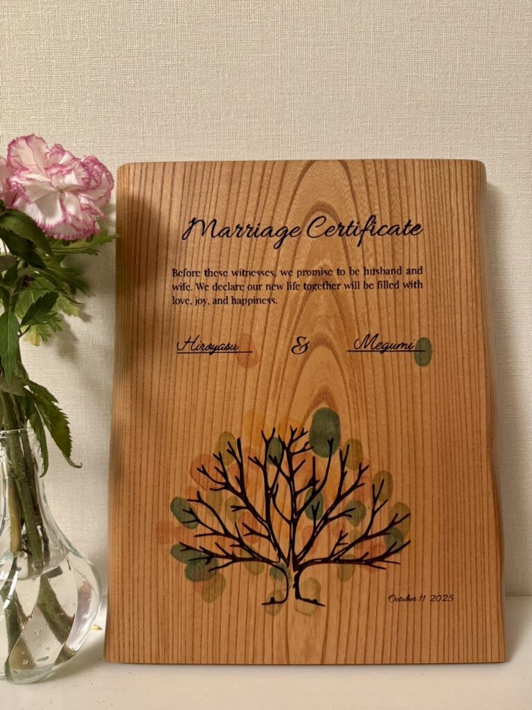 重厚感のあるこの結婚証明書のように、いつまでも篤実なお二人でありますように。