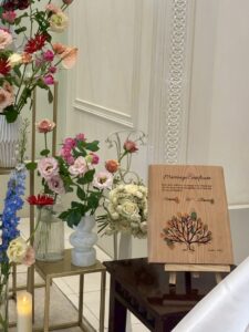 木にウェディングツリーを掘って製作した高級感ある仕上がりになりました。